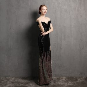 Long Sequins Flat Shoulder Evening Dress For Women
