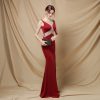 Banquet Autumn Long Red Bride Mermaid Evening Dress